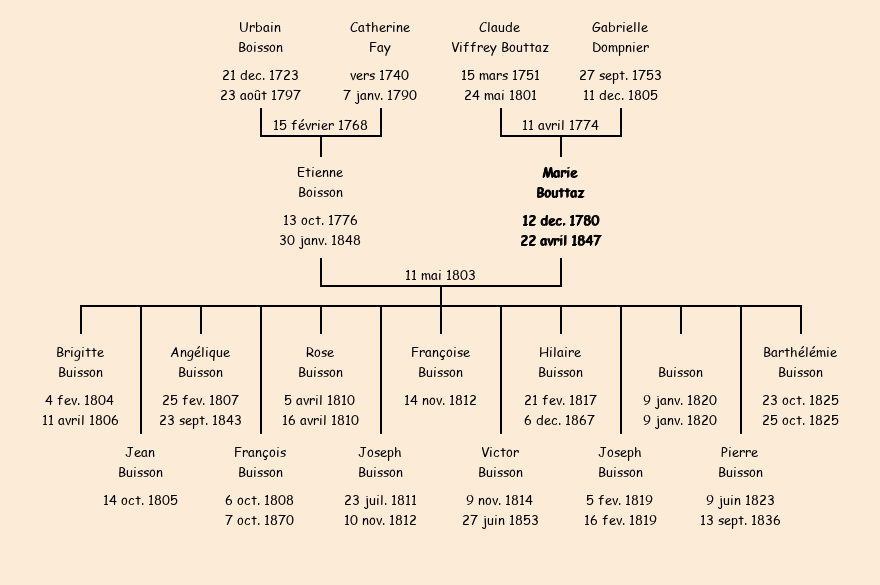 Epoux : Etienne Buisson, fils de Urbain et de Catherine Fay |