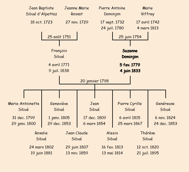 Mariée (18 ans) avec François Sibué (26 ans) le 20 janvier 1798 à Fontcouverte ![]() |