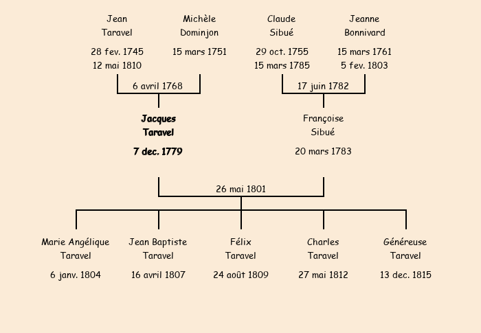 Epoux : Jacques Taravel, fils de Jean et de Michelette Dominjon |