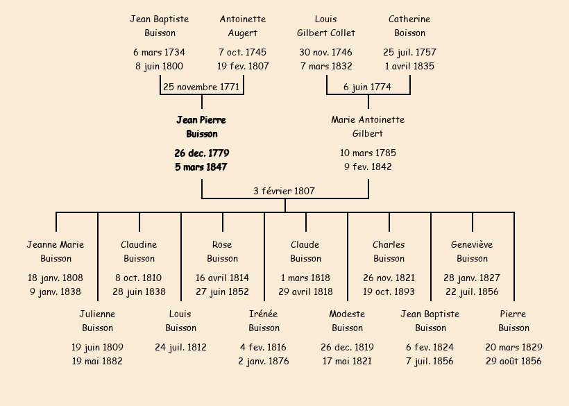 Epoux : Jean Pierre Buisson, fils de feu Jean Baptiste et de Antoinette Augert |