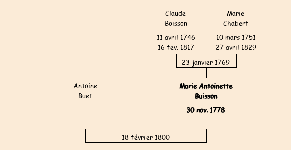 Epouse : Marie Antoinette Buisson, fille de Claude et de Marie Chabert |