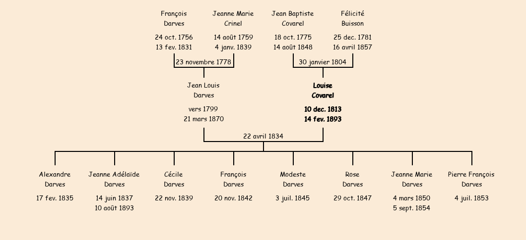 Mère : Félicité Buisson, fille de Claude | Marraine : Louise Covarel (fille de Joseph décédé) |