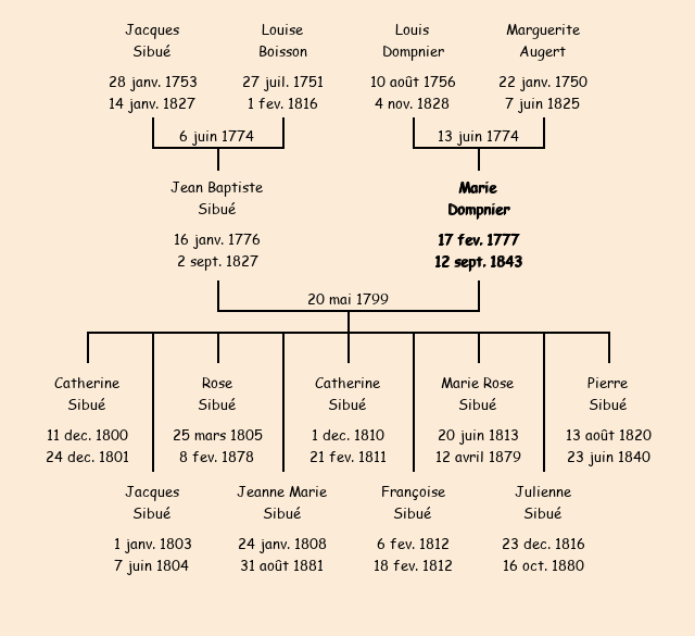 Epoux : Jean Baptiste Sibué, fils de Jacques et de Louise Buisson |