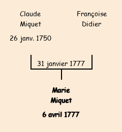 | Mère : Françoise Didier | Marraine : Claudine Miquet (fille de Jean Baptiste décédé) |