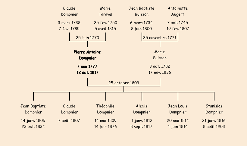 | Epoux : Pierre Antoine Dompnier, fils de feu Claude et de Marie Taravel |