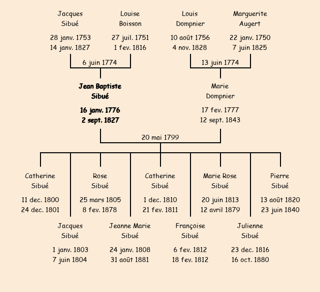 Epoux : Jean Baptiste Sibué, fils de Jacques et de Louise Buisson |
