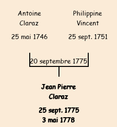 Père : Antoine Claraz | Parrain : Jean Pierre Claraz (fils de Jean Baptiste) |