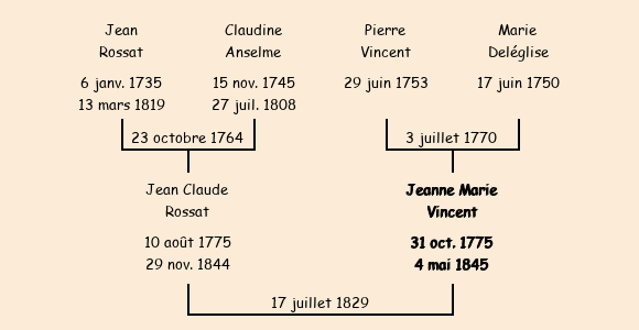 Epouse : Jeanne Marie Vincent, fille de feu Pierre et de feue Marie Deléglise |