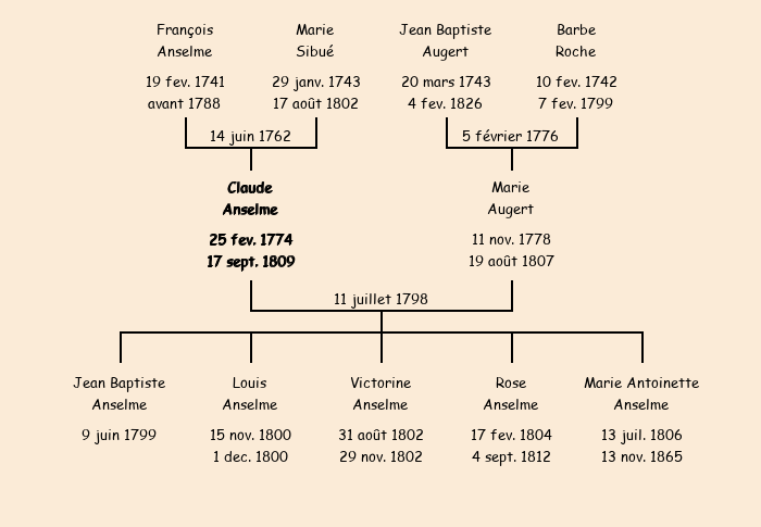 Epoux : Claude Anselme, fils de feu François et de Marie Sibué |