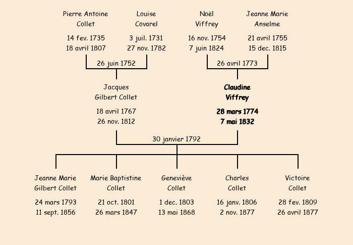 Epoux : Jacques Gilbert Collet, fils de Pierre Antoine et de feue Louise Covarel |