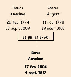 | Père : Claude Anselme, fils de François | Parrain : Georges Rossat (fils de Michel, frère de la marraine) |