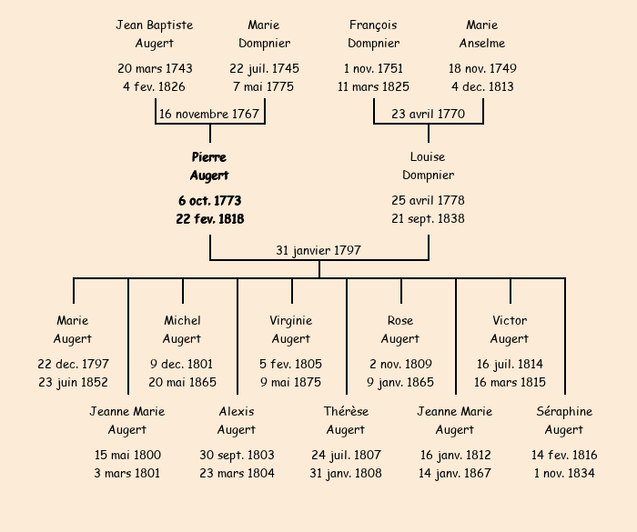 Epoux : Pierre Augert, fils de Jean Baptiste et de Marie Dompnier |