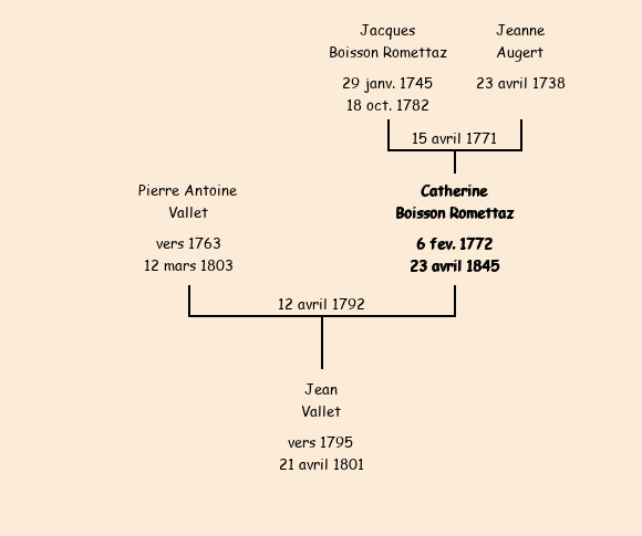 Mariée (20 ans) avec Pierre Antoine Vallet (29 ans) le 12 avril 1792 à Jarrier |