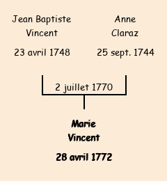 Mère : Anne Claraz | Marraine : Marie Vincent (fille du parrain) |