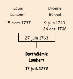 Mère : Urbaine Bonnel | Marraine : Barthélémie Lambert (fille de Michel) |