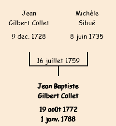 Père : Jean Gilbert Collet | Parrain : Jean Pierre Gilbert Collet |