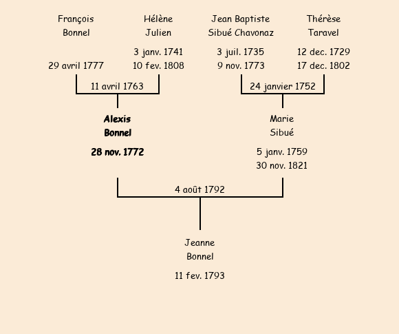Epoux : Alexis François Claraz Bonnel, fils de feu François et de Hélène Julien |