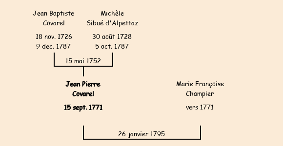 | Marié (23 ans) avec Marie Françoise Champier (24 ans) le 26 janvier 1795 à Saint-Jean-de-Maurienne |