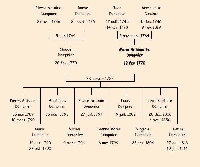 | Epouse : Marie Antoinette Dompnier, fille de Jean et de Marie Madeleine Combaz |