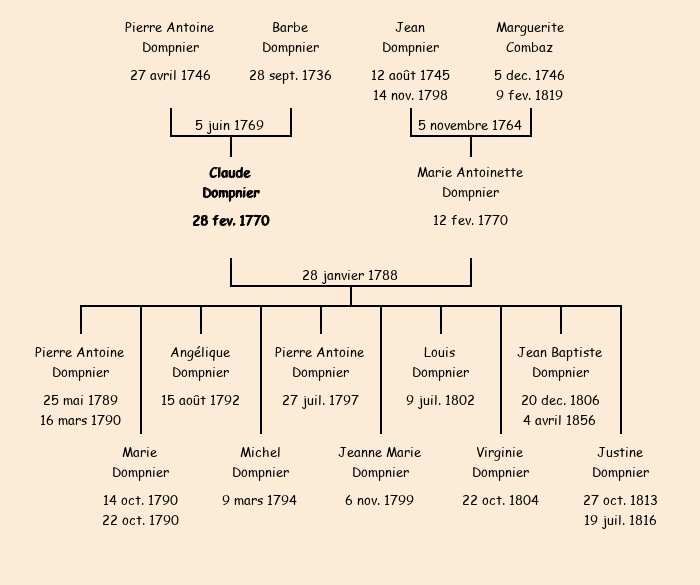 Epouse : Marie Antoinette Dompnier, fille de Jean et de Marie Madeleine Combaz |