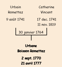 Mère : Catherine Vincent | Marraine : Urbaine Taravel (épouse de François Boisson Romettaz) |