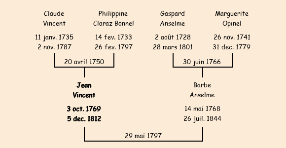| Epoux : Jean Vincent, fils de feu Claude et de Philippine Bonnel |