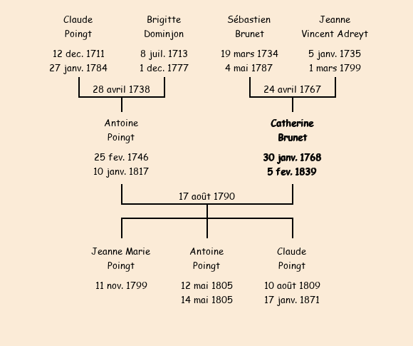 Epouse : Catherine Brunet, fille de feu Sébastien et de Jeanne |