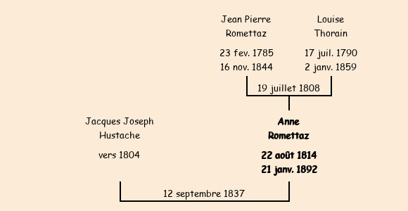 Mariée (23 ans) avec Jacques Joseph Hustache (33 ans) le 12 septembre 1837 à Saint-Jean-de-Maurienne |