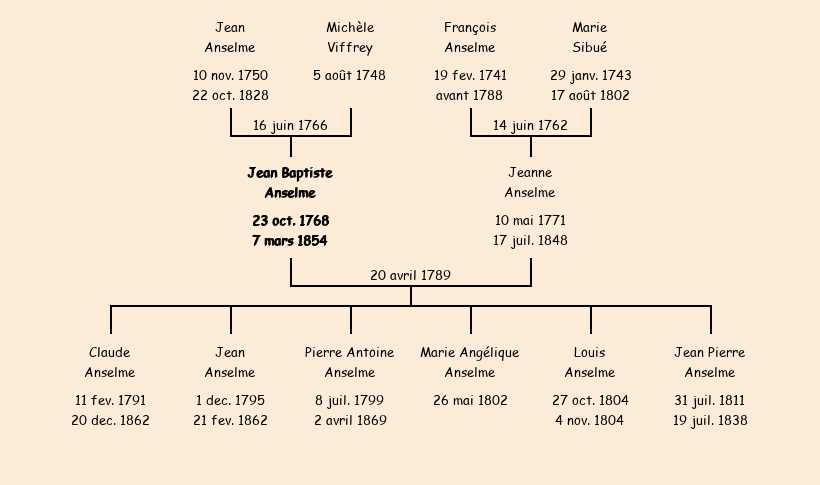 Epoux : Jean Baptiste Anselme, fils de Jean et de Michèle Viffrey |