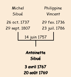 Mère : Philippine Vincent | Marraine : Antoinette Sibué (fille d'Alexandre décédé) |