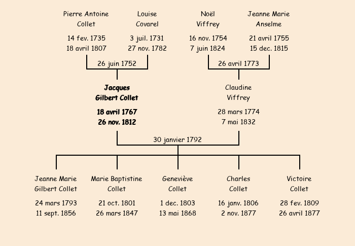 Epoux : Jacques Gilbert Collet, fils de Pierre Antoine et de feue Louise Covarel |