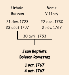 Père : Urbain Boisson Romettaz, fils de Jean Baptiste | Parrain : Jean Baptiste Vincent |