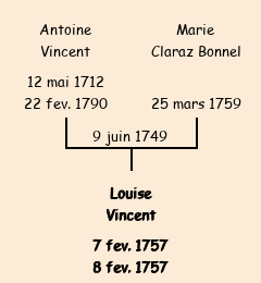 Mère : Marie Claraz Bonnel | Marraine : Louise Vincent (fille du parrain) |