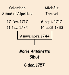 | Marie Antoinette Sibué apparait dans la consigne du sel pour l'année 1759. |
