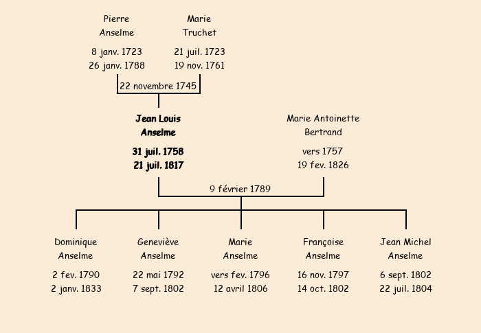 Epoux : Jean Louis Anselme, fils de feu Pierre et de feue Marie Truchet |