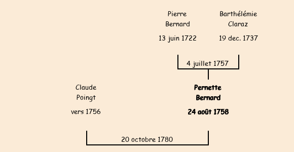 Epoux : Claude Poingt (né et habitant Saint Jean), fils de Jean Baptiste (dit Briquet) et de Dominique Derrier |