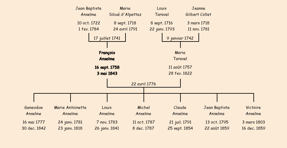 Père : Jean Baptiste Anselme | Parrain : François Anselme (fils de Michel) |