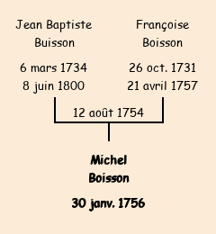 Père : Jean Baptiste Boisson | Parrain : Michel Boisson (fils de Jean Baptiste décédé) |