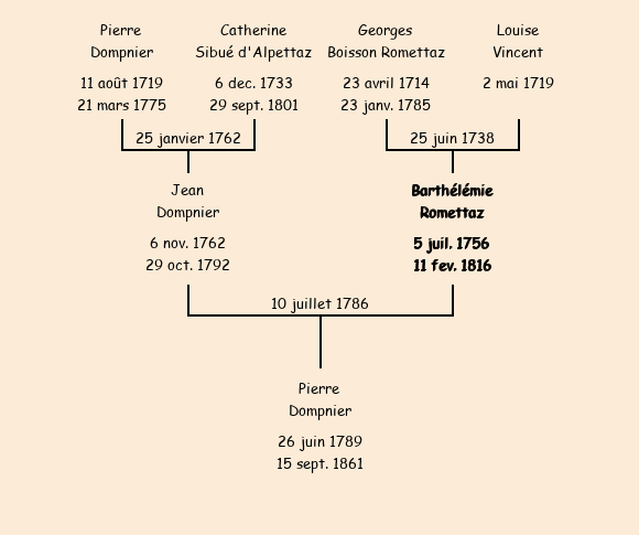 Epouse : Barthélémie Romettaz, fille de feu Georges et de Louise Vincent |