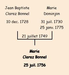 | Père : Jean Baptiste Claraz Bonnel | Parrain : Jean Claraz Bonnel (fils de Jean Baptiste) |