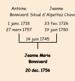 | Jeanne Marie Bonnivard apparait dans la consigne du sel pour l'année 1759. |