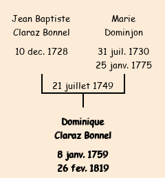 | Père : Jean Baptiste Claraz Bonnel | Parrain : Dominique Claraz Bonnel |