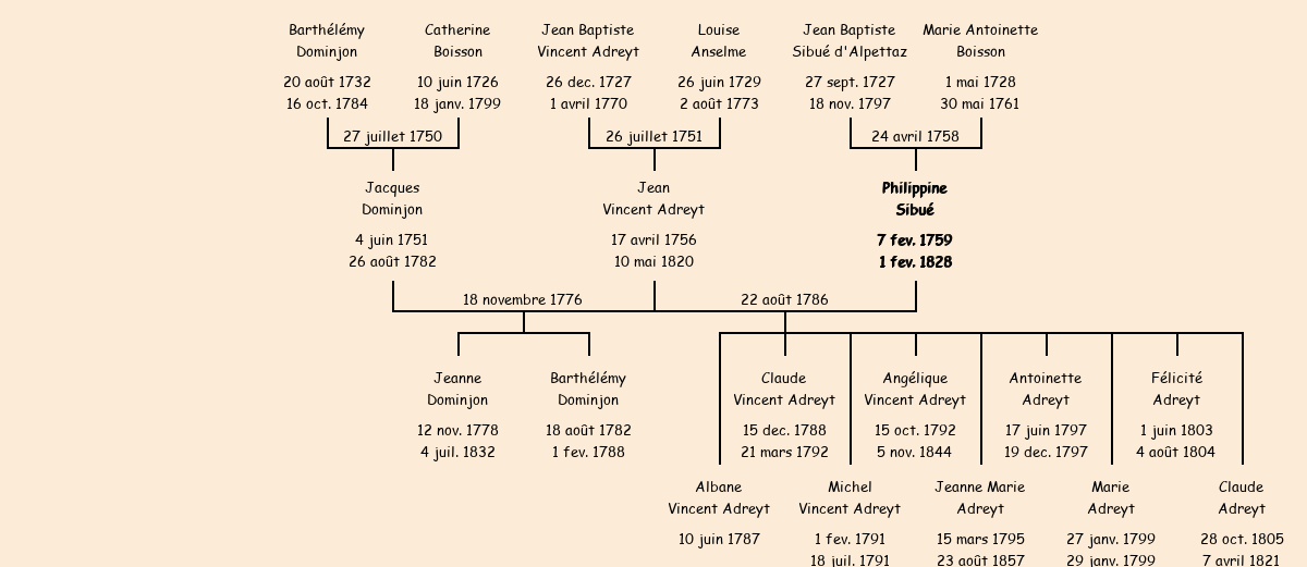 Mère : Philippine Boisson | Marraine : Philippine Viffrey Bouttaz (sa veuve) |