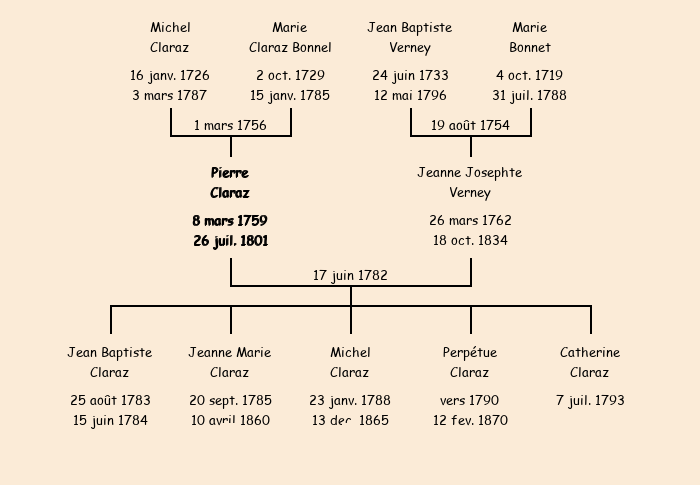 Epoux : Pierre Claraz, fils de Michel et de Marie Bonnel |