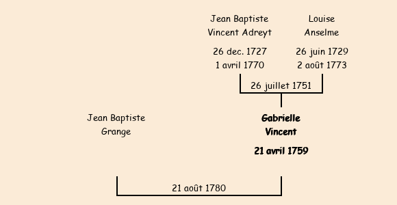 Epouse : Gabrielle Vincent Adreyt, fille de feu Jean Baptiste et de feue Louise Anselme |