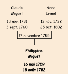 Mère : Anne Crinel | Marraine : Philippine Dompnier (épouse de Louis Miquet) |
