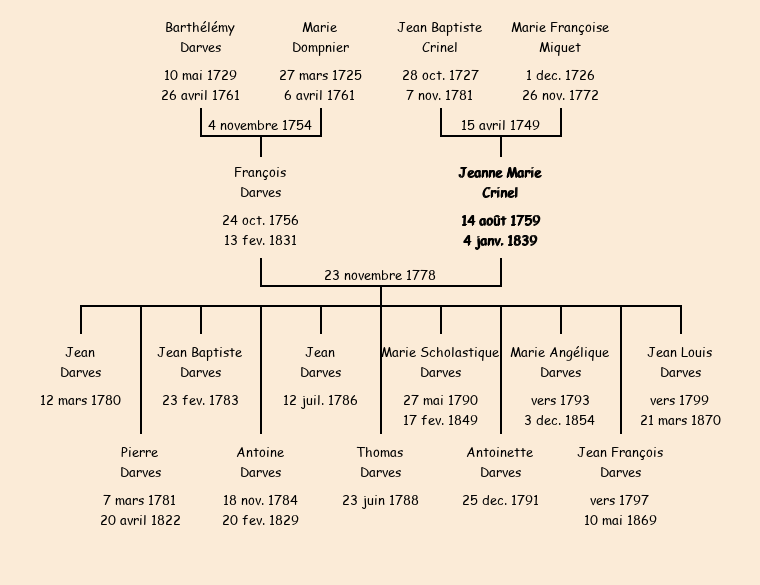 Epouse : Jeanne Marie Crinel, fille de Jean Baptiste |