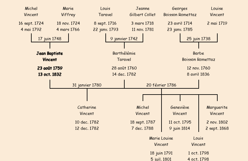 Epoux : Jean Baptiste Vincent, fils de Michel et de feue Marie Viffrey |