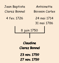 Père : Jean Baptiste Claraz Bonnel | Parrain : François Claraz Bonnel |