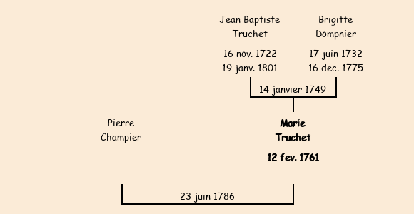 | Mariée (25 ans) avec Pierre Champier le 23 juin 1786 à Saint-Pancrace |